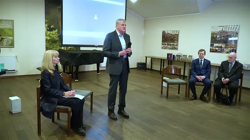 2026 03 10 M. K. Čiurlionio menų mokykloje vyko pasikalbėjimai apie Kovo 11-osios Akto signatarą Vladą Terlecką. Susitikime su moksleiviais ir pedagogais dalyvavo jo kolegos – Stasys Kropas, Audrius Rudys, Sigitas Šiaudinis, taip pat dukra Jūratė Terleckaitė.